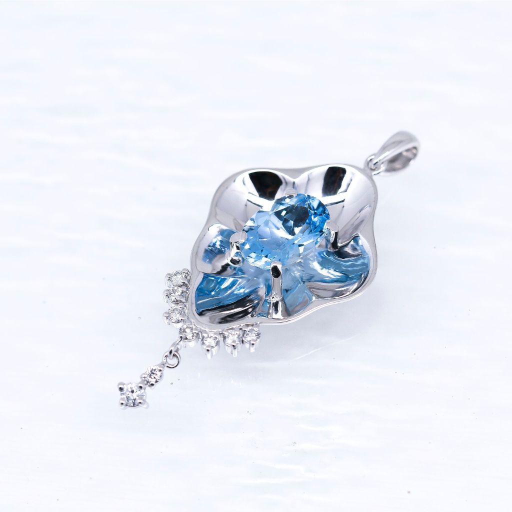 K18WG・アクアマリン・ダイヤモンドペンダントトップ
